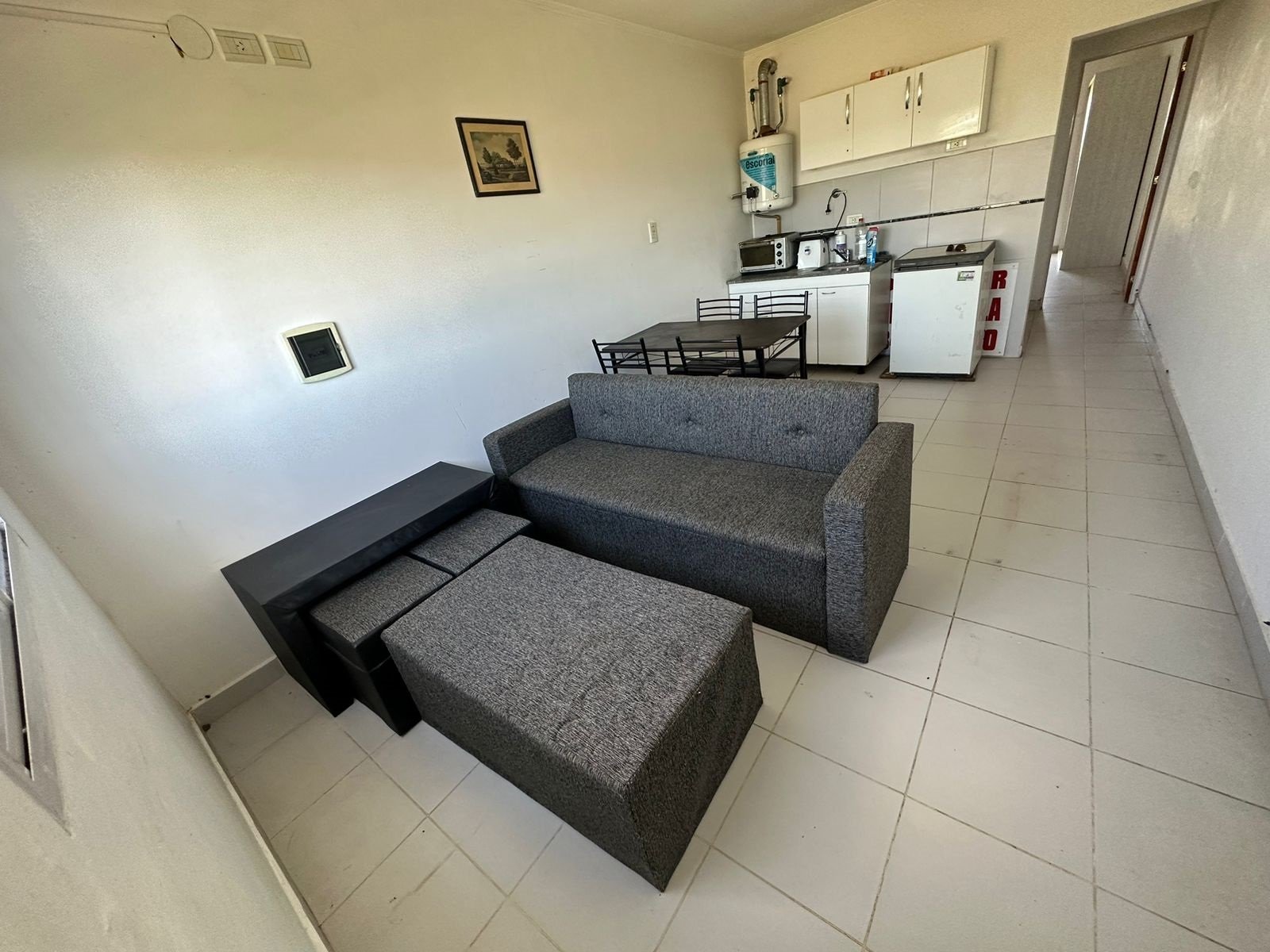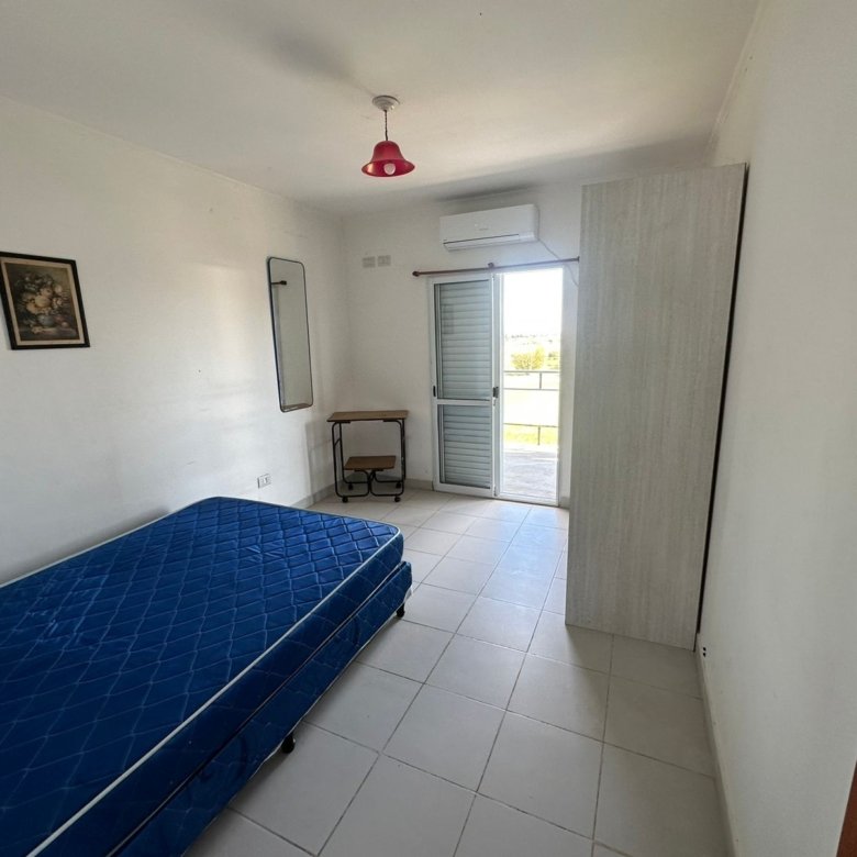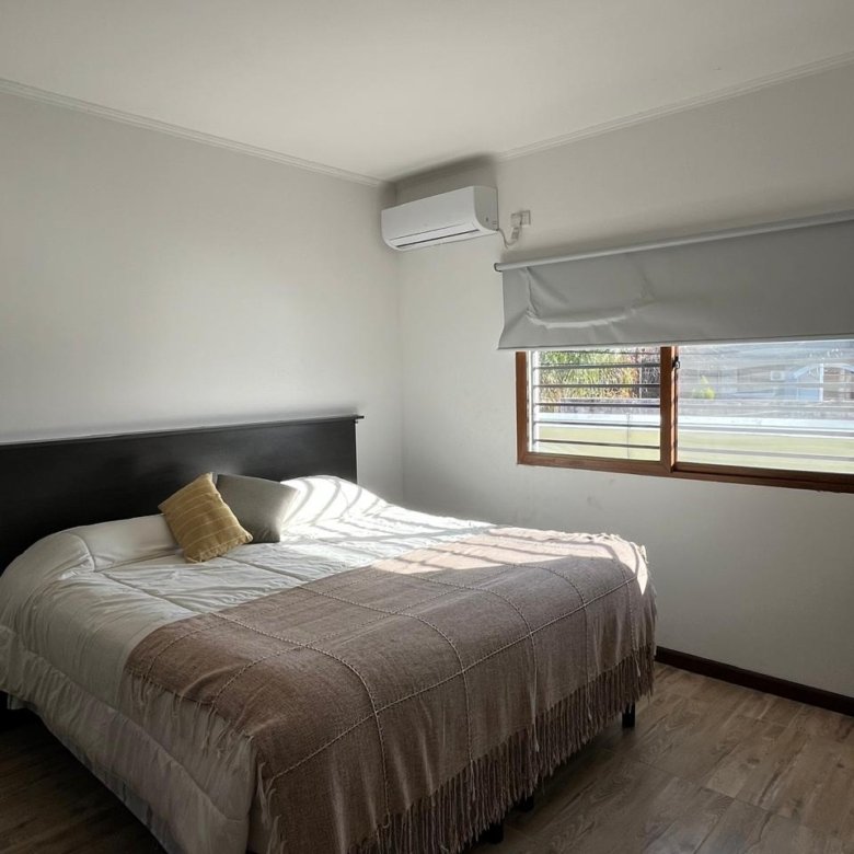 Heladera, aire acondicionado, mesa con 4 sillas, amoblamiento de dormitorio (2 camas simples o 1 doble) y placard.